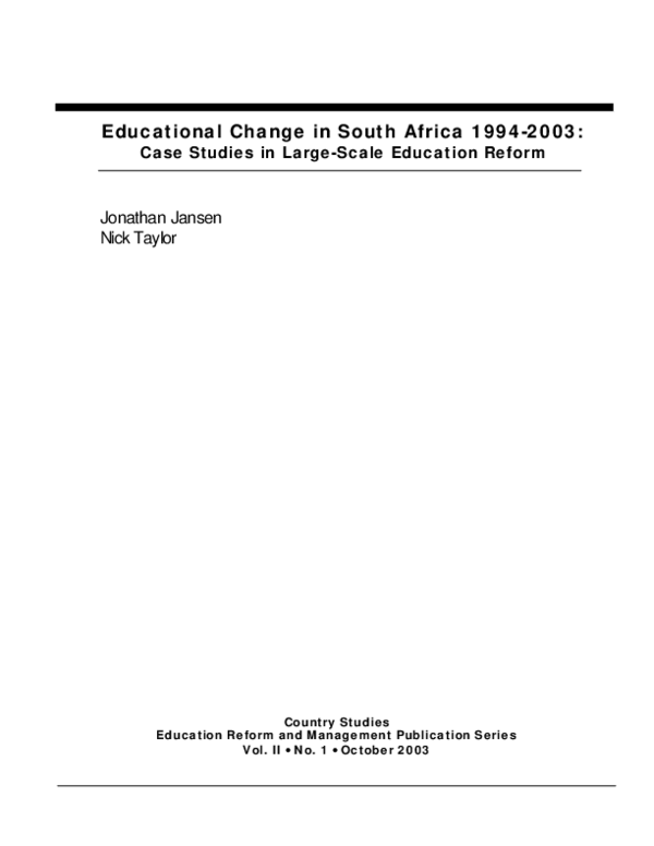 (PDF) Educational Change in South Africa 1994-2003: Case Studies in