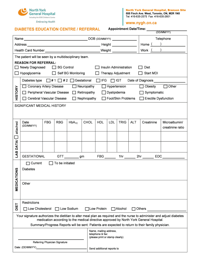 Fillable Online Wwwnyghonca DIABETES EDUCATION CENTRE REFERRAL Fax