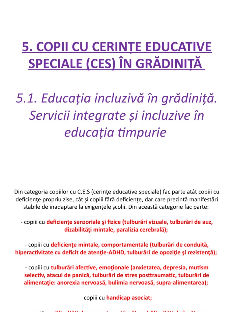 Copii Cu Cerinte Educationale Speciale (Ces) in Gradinita | PDF