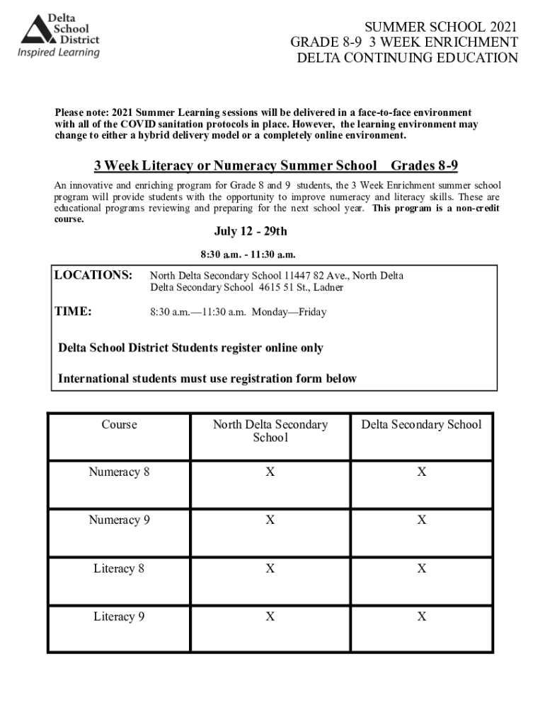 Fillable Online Summer Learning Subpage - Coquitlam Continuing