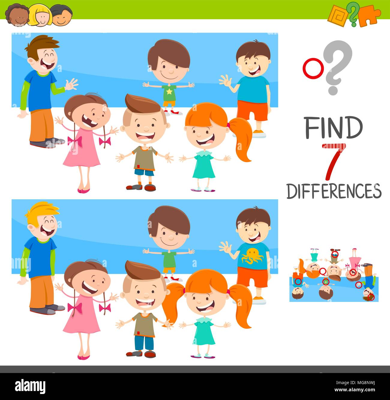 Cartoon Illustration of Finding Seven Differences Between Pictures