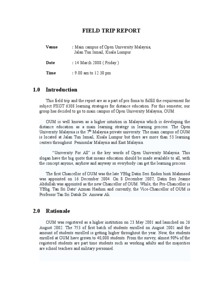 ⇉Field Trip Narrative Report Essay Example | GraduateWay