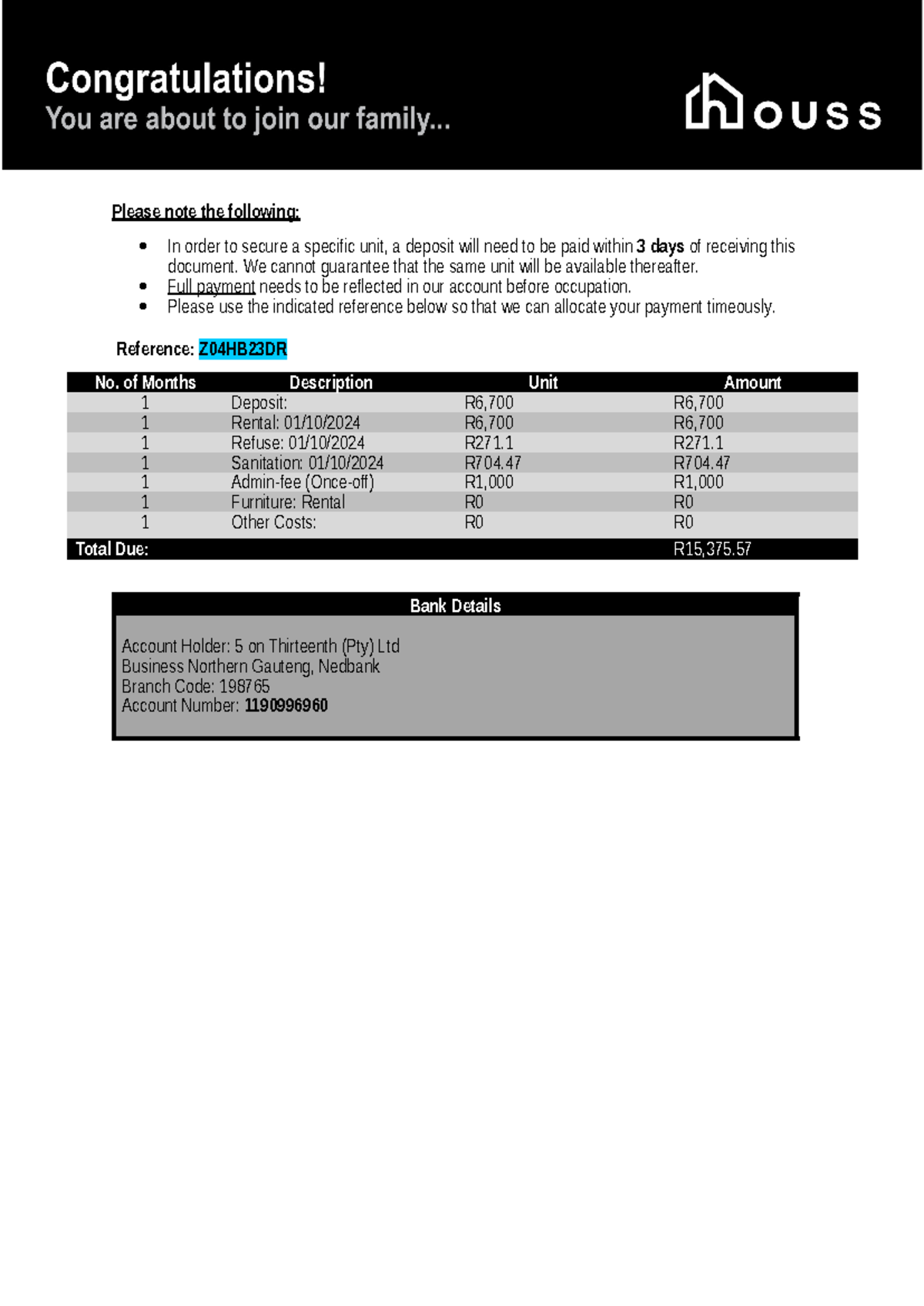 5ive on 13th Payment Document 65815 - Please note the following: In