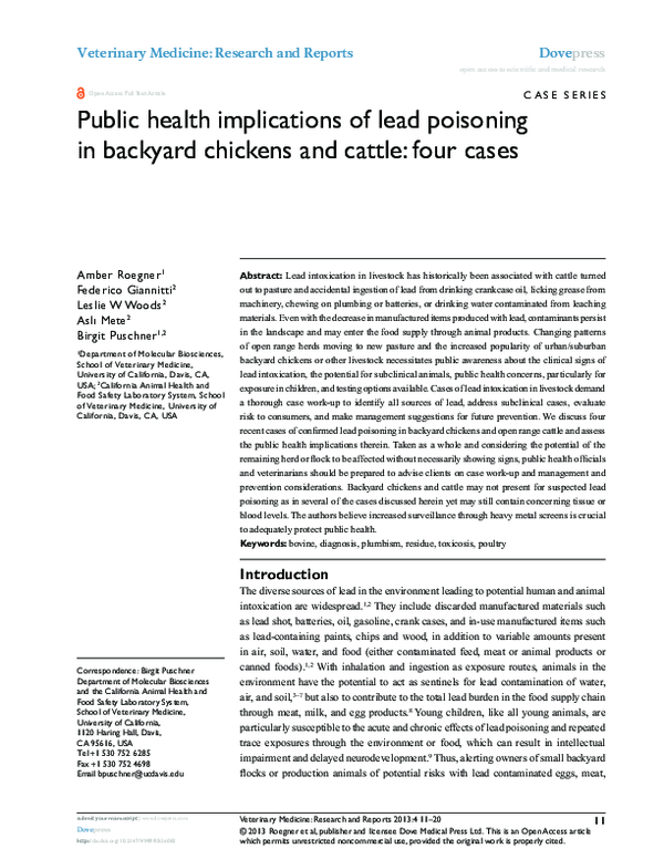 (PDF) Public health implications of lead poisoning in backyard chickens