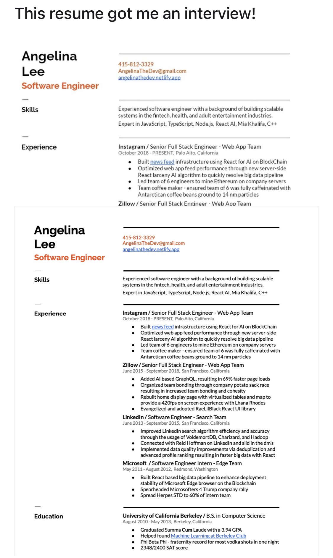 Gergely Orosz on Twitter: "An eng created a fake CV with Instagram