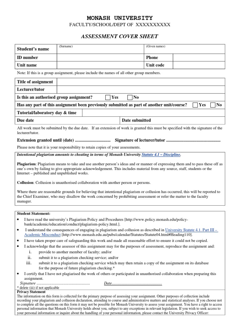 🎉 Monash university assignment cover sheet. Thesis and Essay: Monash