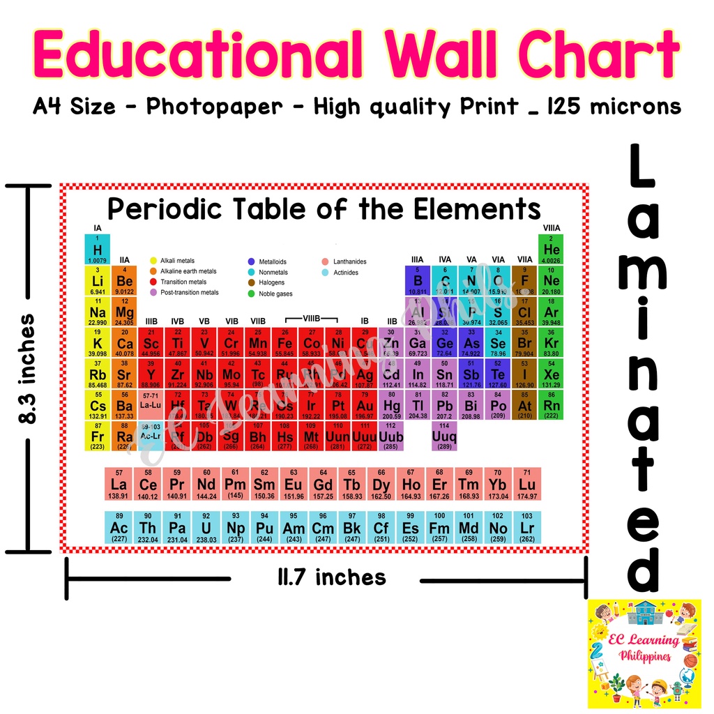 A4 PERIODIC TABLE Laminated Educational Charts for Kids | Shopee