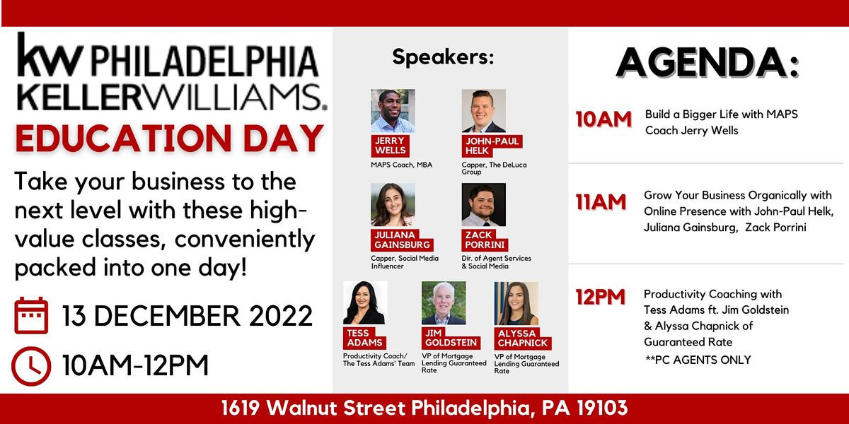 Keller Williams Philadelphia Education Day 12/20 | 1619 Walnut Street
