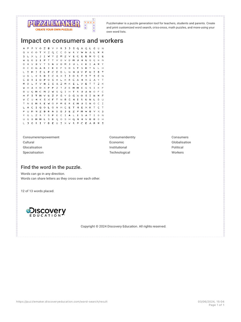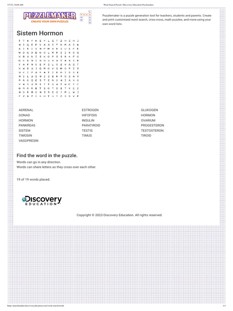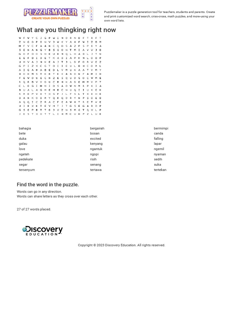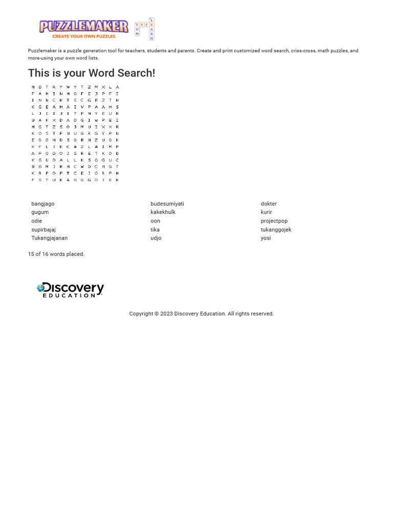 Word Search Puzzle - Discovery Education Puzzlemaker | PDF