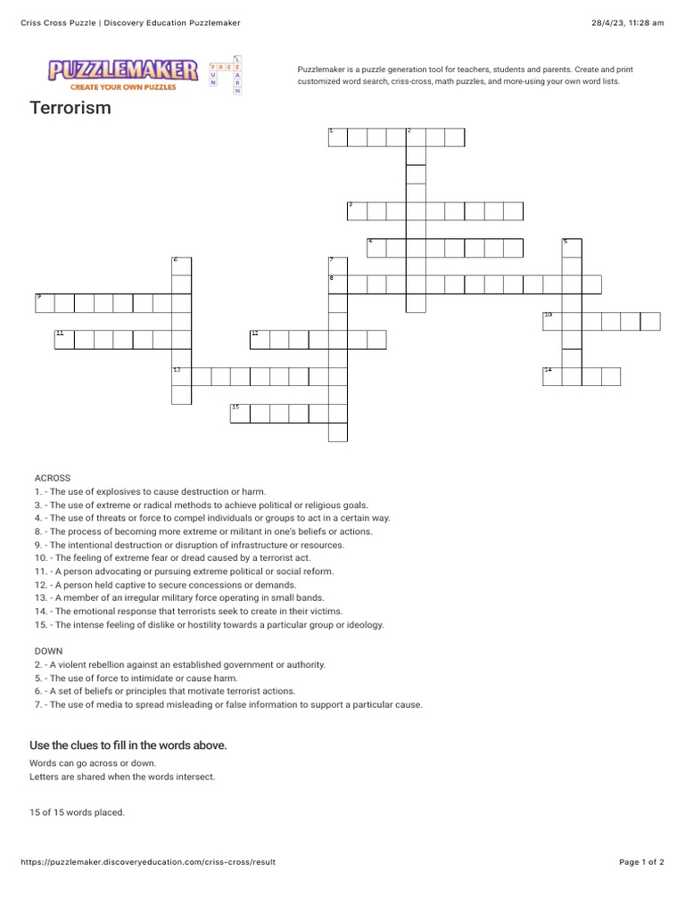 Criss Cross Puzzle Discovery Education Puzzlemaker PDF | PDF