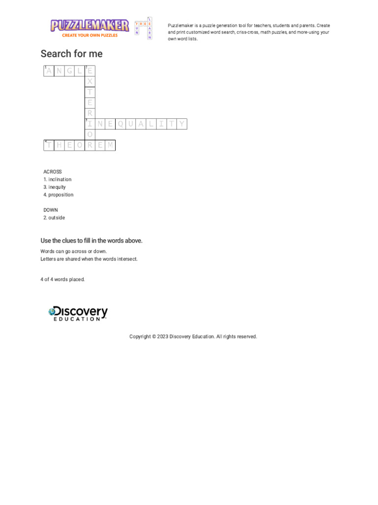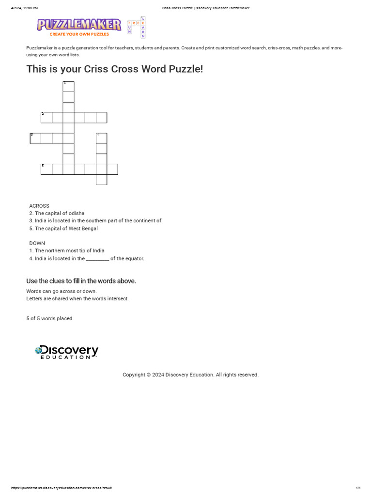 Answer Criss Cross Puzzle - Discovery Education Puzzlemaker | PDF