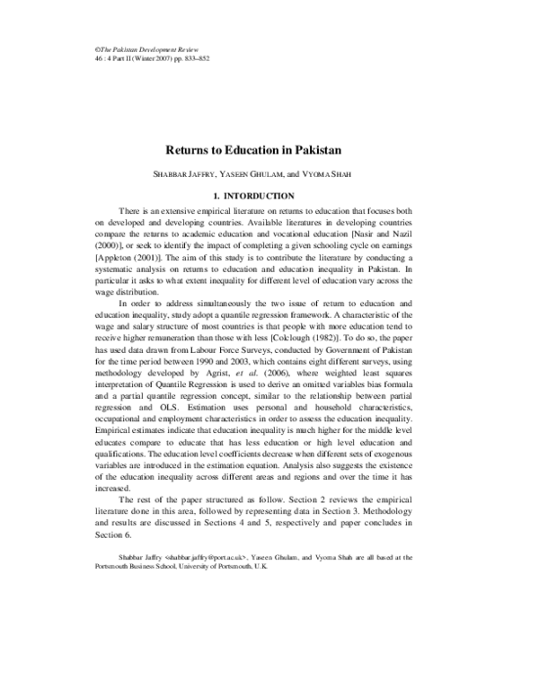 PIDE Working Paper Webinar:is Decision To Obtain Higher Education In