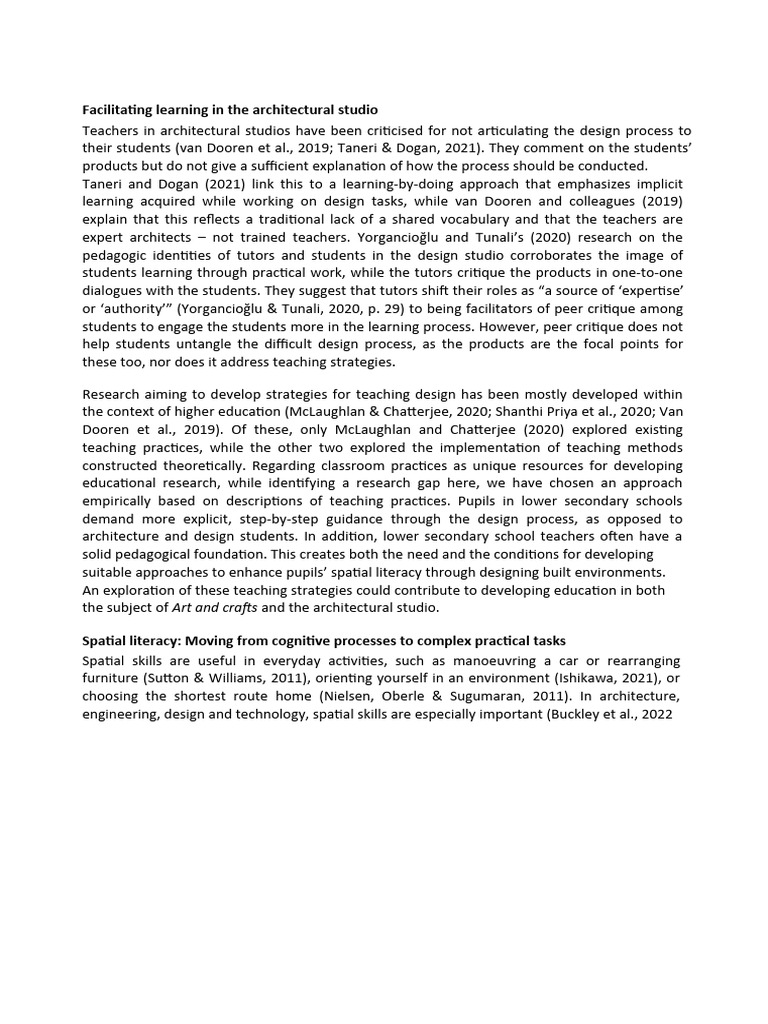 Developing Spatial Literacy Through Design of Built Environments: Art