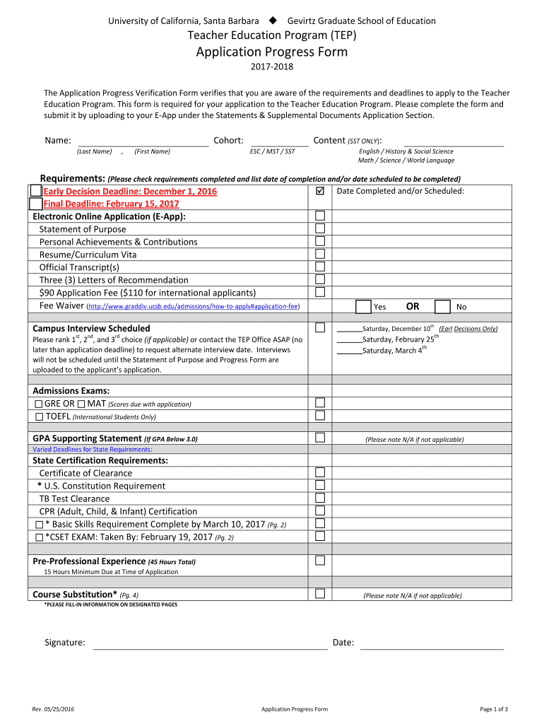 Fillable Online education ucsb TEP Application Progress Form 7.13