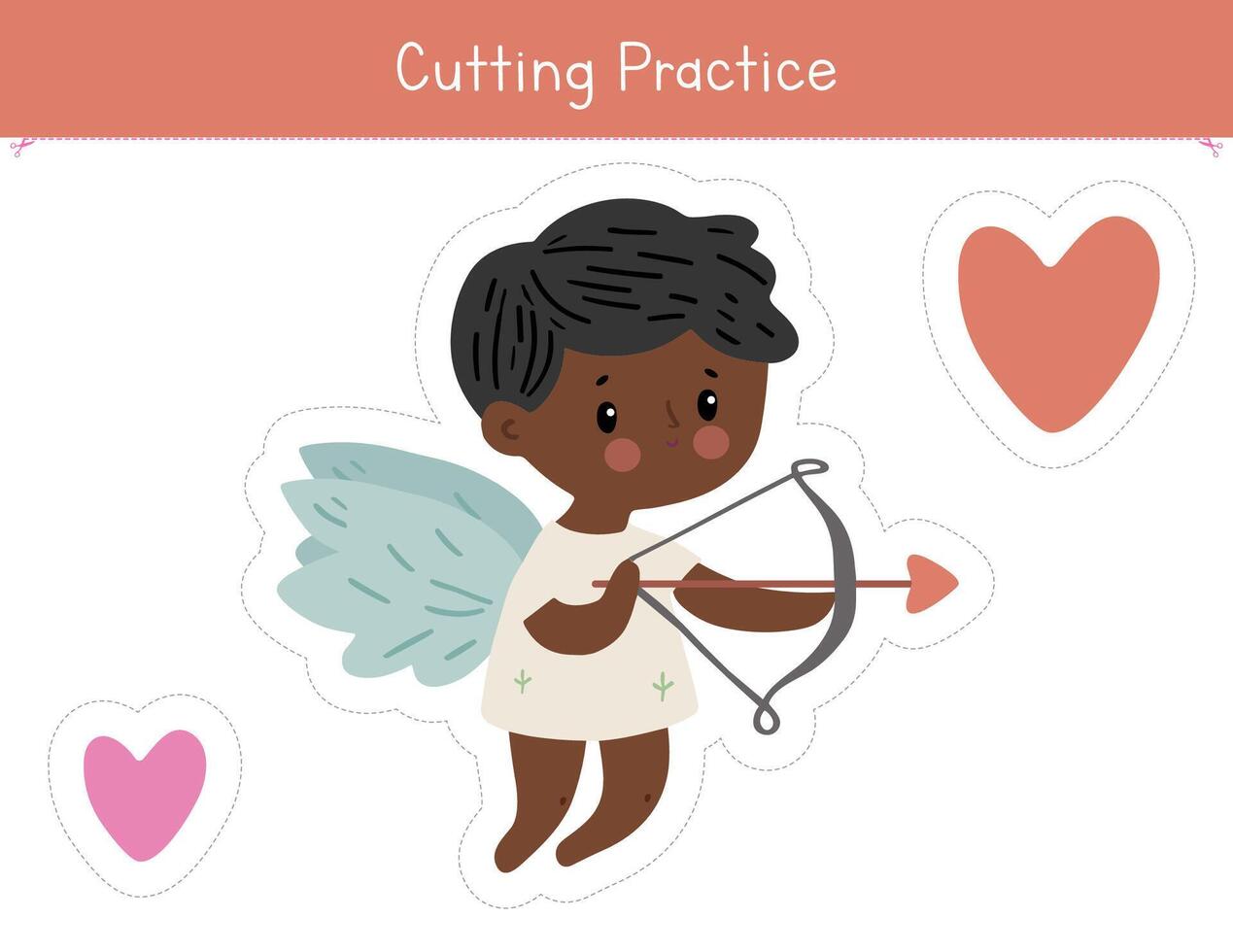 Valentine's Day educational game for kids. Cutting practice worksheet